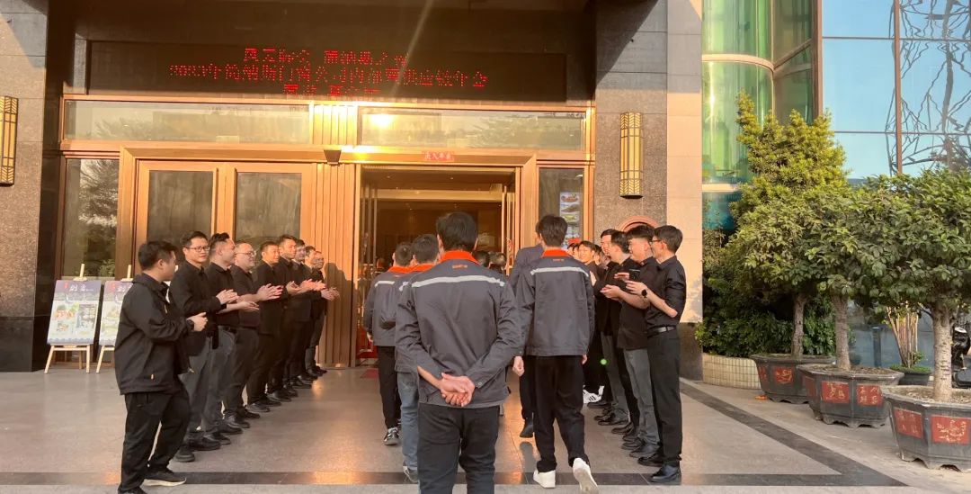 简纳斯营销中心家人在会场门口列队迎接,鼓掌欢迎到场的简纳斯家人,仪式感满满!