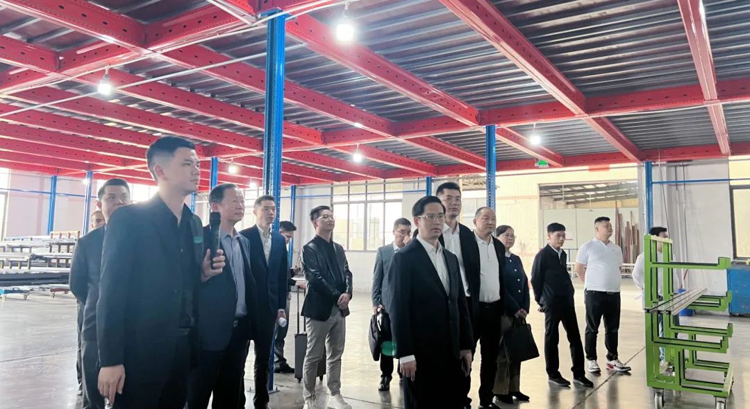 在简纳斯门窗高层团队陪同下,云浮市领导与佛山市云浮市商会一行先后参观了简纳斯门窗全新4.0品牌展厅、100000平方米智能化生产车间。