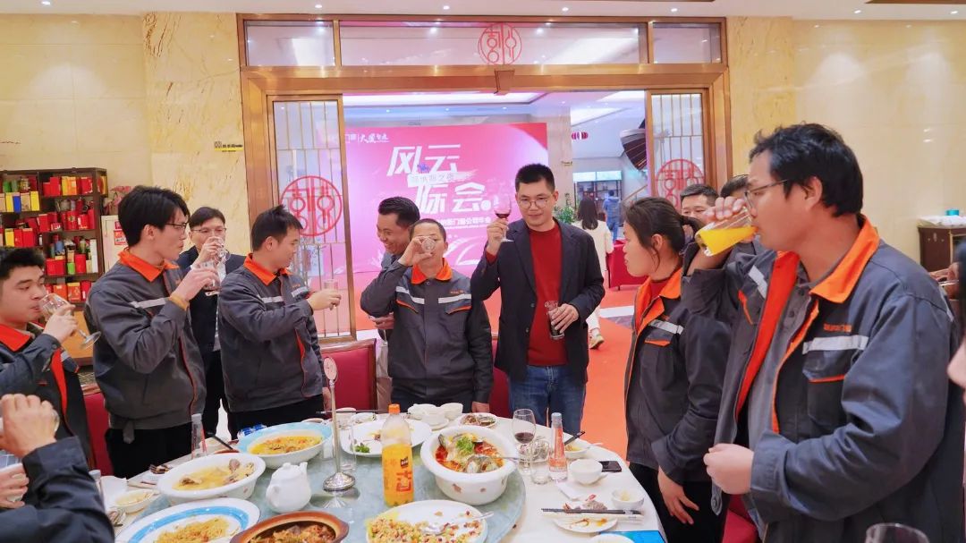 盛典现场,欢声笑语此起彼伏,大家畅所欲言,共享这份浓厚的团队情谊。简纳斯门窗总经理伍尚勇先生携公司领导层,逐桌向家人们敬酒,表达对他们的感激之情和对辛勤付出的肯定。此刻,不仅是对过去一年付出的赞誉,更是对未来的满怀信心与期许。一杯杯美酒,不仅承载着简纳斯人的英勇情怀,更是汇聚了每一个人的辛勤付出,共同铸就简纳斯新的征程动力。
