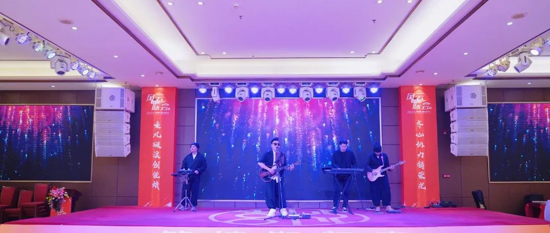 年会盛典舞台上,乐队演奏带来动听优美的歌声打动着在场所有人,大家沉浸在这欢乐的氛围中,留下美好的回忆。