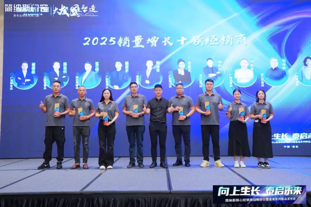“向上生长·泰启未来”,本次会议既是战略共识的凝聚,更是厂商同心的再出发。未来,简纳斯门窗将以高维视角洞察市场趋势,以深厚研发实力应对行业挑战,以多元赋能政策助力经销商成长,与全体伙伴携手穿越市场周期,共赴门窗行业的万亿蓝海!