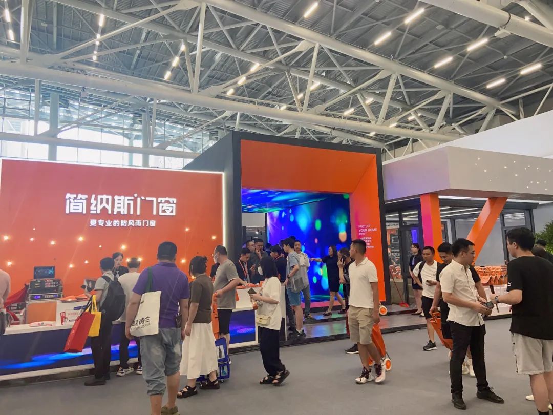 作为广州建博会的常客,简纳斯门窗再次重磅出击,以“享新品 ·橙大事”为参展主题,重金打造375平米的网红展馆里,展现了简纳斯全新品牌VI/SI形象,同时智能提升窗、全隐推拉窗、极简吊趟门等一众代表行业新趋势的颜值新品,吸引了众多意向客户和行业的重点关注,并成功占据C位。