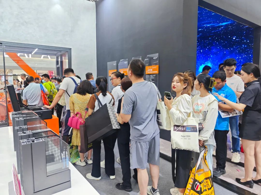作为建博会的常客,简纳斯携重磅新品参展,产品展示区人气爆满,尤其是星域空间系列智能提升窗、新境系列全隐推拉窗、揽胜系列提升推拉门、明宇系列极简吊趟门等重磅新品,吸引了众多观众和行业同仁前来参观、体验。